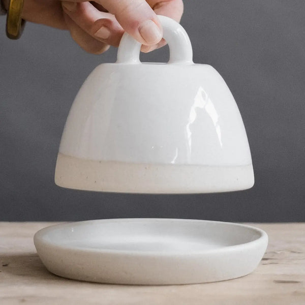 Atelier Tréma was born in 2004 with Marie-Joël Turgeon, a graduate in visual and media arts at UQAM. Inspired by her summers spent in the Maritimes and the American East Coast, she created ceramic pictorial works for several years. In 2014, with her husband Jordan Lentink, they needed a change and decided to make a small collection of everyday tableware, always inspired by these same seascapes. Their collection evokes the horizon, and borrows the textures of ancient objects, found on the beach that have been worn by salt, wind and sun. Now based in the heart of the Eastern Townships, the couple still work passionately with clay and now have three other collections, but this time inspired by the chosen place that surrounds them. With their small team, they make everyday, practical and timeless objects, just like the ancient places full of history in their chosen region. They found roots in Bedford, where a shop, a small café, and a family of artisans were born.
