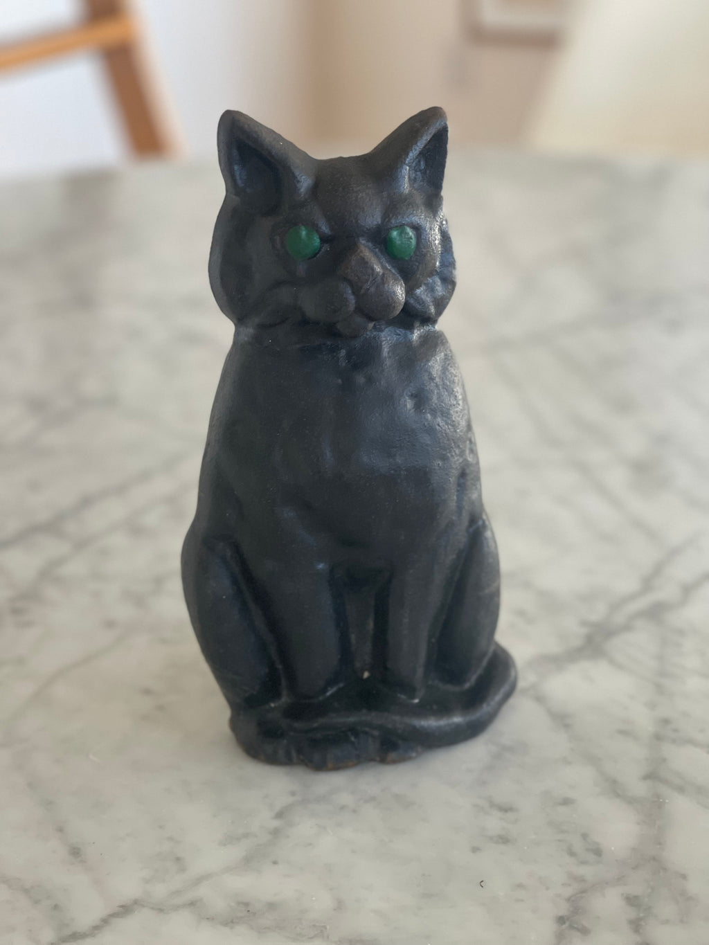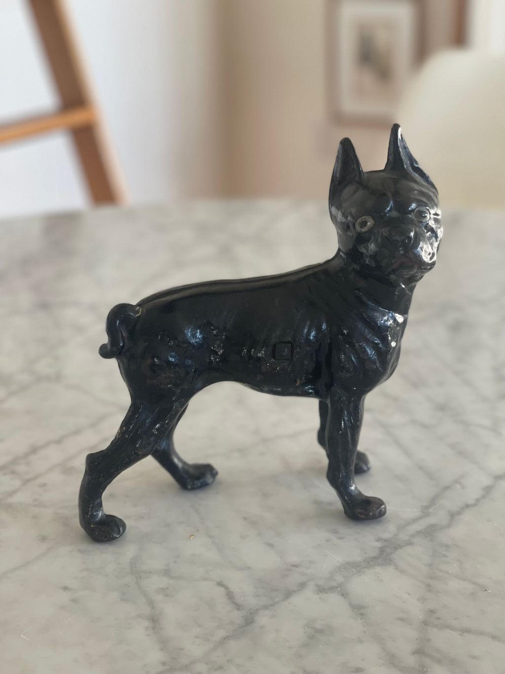 Vintage Original Hubley Cast Iron Boston Terrier Door Stop with Rare Full Black Paint
